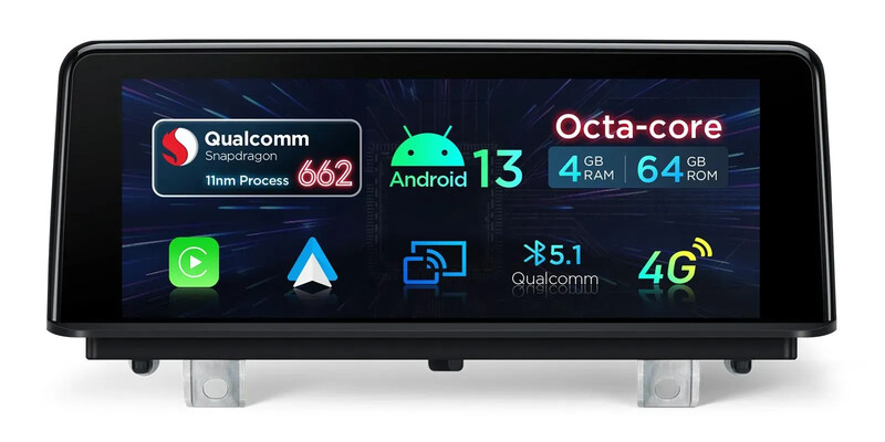 * Optimalizovaný OS Android 13.0 *Octa-Core (až 2,0 GHz) operační systém * Qualcomm Snapdragon 662 *11nm procesní technologie * Architektura Kryo 260 *GPU Adreno 610 *LPDDR4 4GB RAM + 64GB ROM * Qualcomm Bluetooth 5.1 *Vestavěné bezdrátové a kabelové CarPlay a bezdrátové a kabelové Android Auto *Vestavěný modul 4G (Evropa a Asie) *8,8palcový IPS dotykový displej s rozlišením 1280*480 G+G Grade-A *Dvoupásmové připojení Wi-Fi (2,4 GHz a 5 GHz) *Podpora 1080P videa *7 Působivě krásných motivů uživatelského rozhraní *Původní informační displej vozu s více barvami - Systém IDrive zachován - Systém zesilovače - Originální rádio - Originální CD přehrávač - Displej záložní kamery -Bluetooth - Funkce ovládání na volantu * Okamžitý přístup do režimu couvání *Zrcadlení obrazovky * Aplikace Global Weather * Přesná GPS navigace *PIP-obraz v obraze * Multimediální USB/SD vstup *Maximální všestrannost se základním příslušenstvím (volitelné) - Kamera, OBD, DVR+ADAS, DAB, TPMS, mikrofon a klávesnice